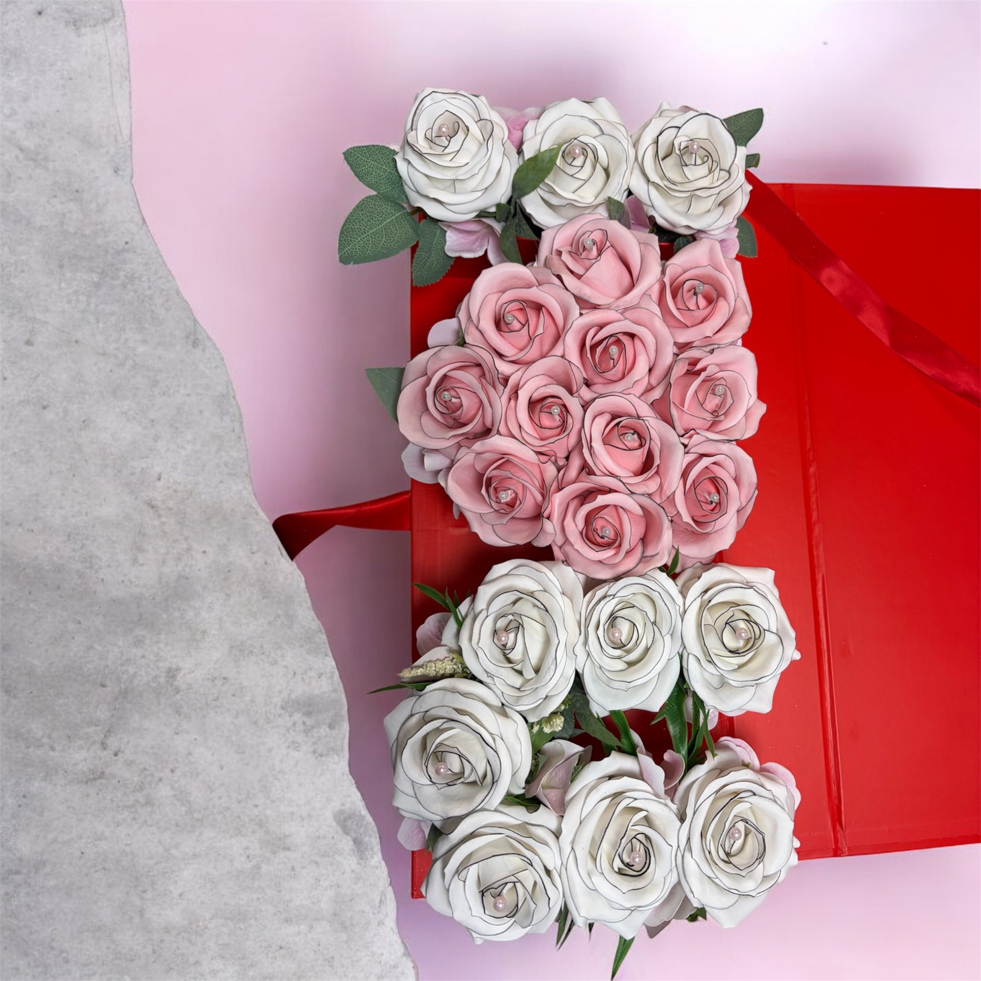 Valentin napi "I LOVE YOU" szappanrózsával kirakva!